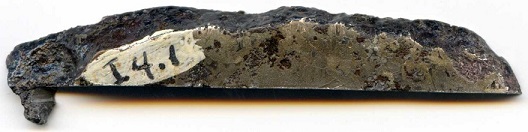 The painted number indicates this section was once part of the collection of the Institute of Meteoritics, University of New Mexico, under the curatorship of Lincoln LaPaz. This specimen is published in two UNM catalogs, LaPaz (1965) and Lange, Klaus, LaPaz (1980)—per Mike Bandli.