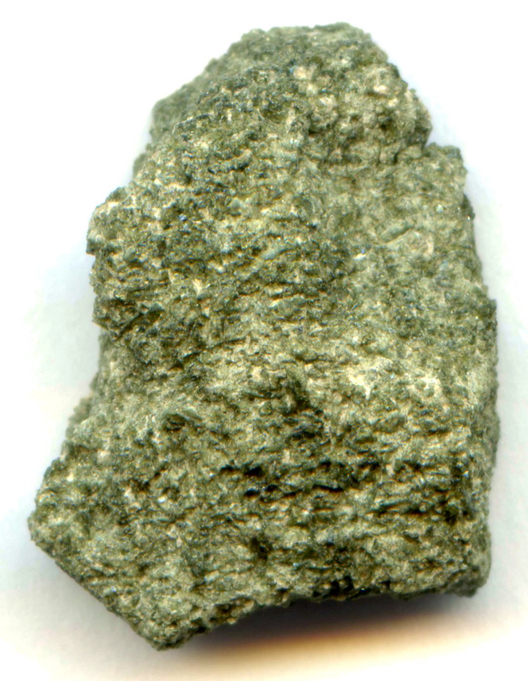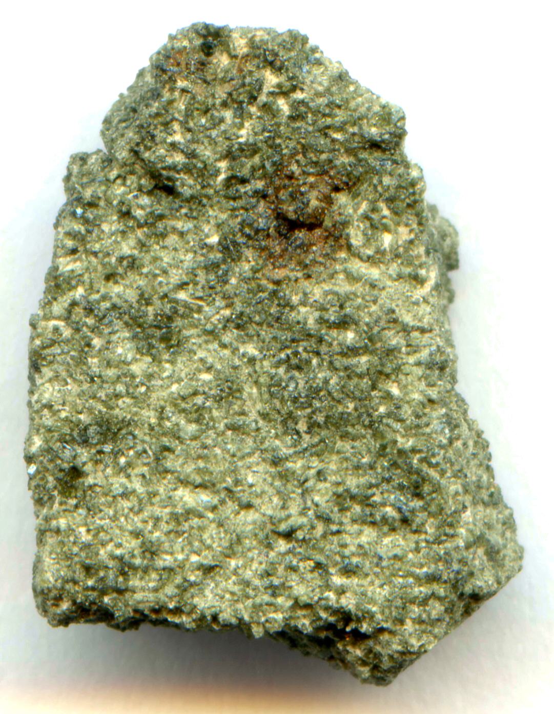 Based on data from the Infrared Mineralogical Mapping Spectrometer aboard the Mars Express orbiter, olivine-enriched craters in the region of Thaumasia Planum were found to be the best match to the nakhlites (Ody et al., 2013). The specimen of Nakhla pictured at the top of this page is a 1.9 g fragment containing a patch of reddish-brown material (seen in the upper center of the image), probably an aqueous alteration product similar to iddingsite or smectite (and martian microbes?).