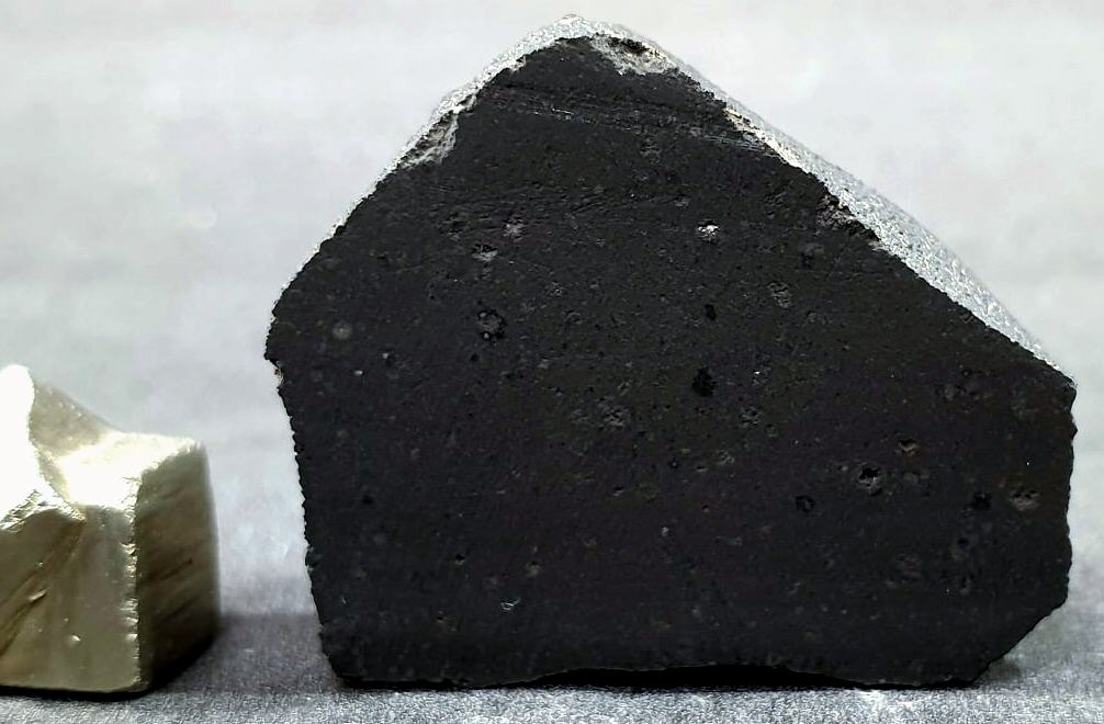 NWA 13167 has a black, highly porous matrix composed of phyllosilicates, carbonates, Fe-sulfides, and forsteritic olivine, the latter containing FeNi-metal inclusions. Chondrules are small (~300 µm) compared to those in CV and CK chondrites, and CAIs are rare. An oxygen isotope analysis was conducted at the University of New Mexico (K. Ziegler) employing laser fluorination. Northwest Africa 13167 has an O-isotopic composition that is more 16O-rich than that of CM chondrites and is distinct from both CV and CK chondrites (see diagram below).
