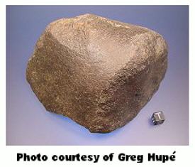 Information pertaining to the origin and petrogenesis of the brachinites and the meteorite GRA 06128/9, considered to be a possible representative of the feldspathic crust of the brachinite parent body, can be found on the NWA 3151 and Reid 013 pages. The specimen of NWA 4969 shown above is a 0.93 g partial slice. The photo below shows the partial stone as found.