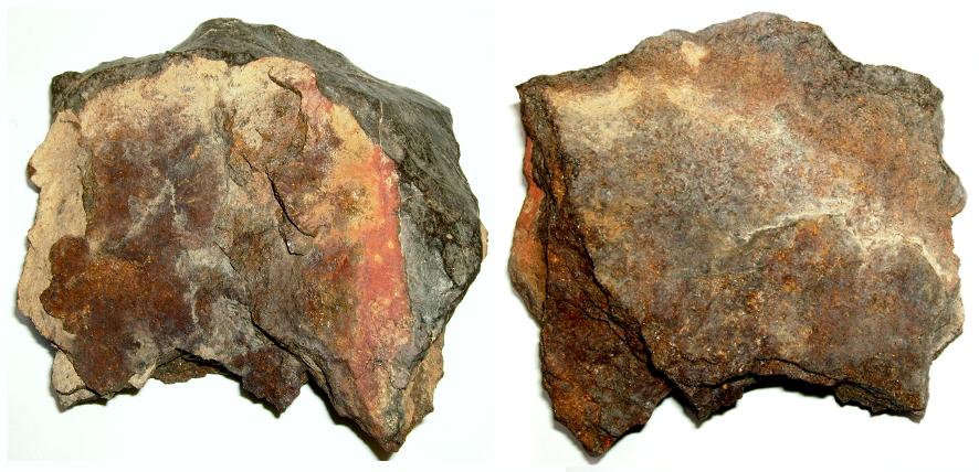 The CRE age based on 3He and 21Ne was determined to be ~29 m.y. The specimen of NWA 5400 shown above is a 5.3 g partial slice. Shown below is a composite image of both sides of the complete mass as found.