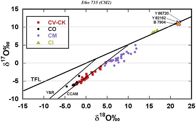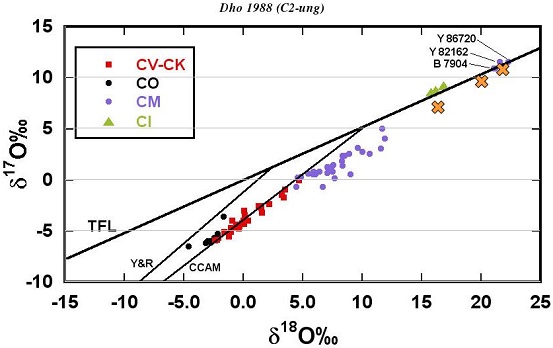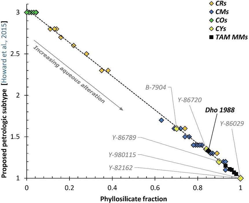 | Other potential members (e.g. A-881458 [CM2], Dho 225 [CM-anom or ung], Dho 735 [CM2], Dho 1988 [C2.2-ung], Dho 2046 [CM2-anom], Dho 2066 [C-ung], EET 96010 [CM2], NWA 4757 [CM2; article], PCA 02012 [CM2.9], WIS 91600 [CM2.0/2.2/2.3 or CI; poss related to NWA 12563 {article}; other rel abs and article: 2019 #1338, 2020], Y-793321 [CM2.3/2.4]) |