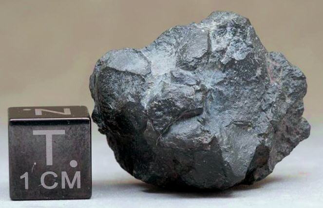 A fresh, black, carbonaceous chondrite weighing just 90 g was found in the desert of Oman. Dhofar 225 has textural characteristics similar to typical CM chondrites, but differs from members of that group in mineralogy, bulk composition, and O-isotopic composition (Ivanova et al., 2010). The chromium oxide content of Dhofar 225 indicates a petrologic type below 3.0. A likely paired 16.6 g stone designated Dhofar 2046 was found nearby by Pierre-Marie Pelé in 2014 (see photo). Notably, a 6 g stone designated Dhofar 2016 and classified at The Natural History Museum in Berlin (A. Greshake) as CM2 was recovered in 2010 within ~1 km of Dhofar 225.