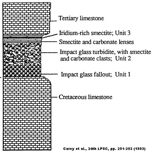 The impact spherules from the K–Pg boundary stratigraphic section in Haiti were identified by Bohor and Glass (1995) as splash-form melt droplets (spheroids, ovoids, teardrops, dumbbells, rods, etc.), which constitute the lowermost of two separate and compositionally different ejecta layers present at various sites within ~4,000 km of the crater. This thick, white-colored lower claystone layer consists of Type 1 spherules which are now mostly hollow due to dissolution, and are composed of secondary palagonite/smectite. Type 1 spherules were part of a ballistic ejecta curtain which was transported within the cold atmosphere at shallow angles and rapidly quenched. Acceleration of these spherules was aided by shock-volatilization of carbonates (and sulfates) composing the target rock, rapidly releasing CO2 and explosively converting water into steam. Consequently, these spherules are mostly restricted to sites within the Western Hemisphere. The thinner, black-colored upper claystone layer contains solid, crystalline Type 2 spherules along with Ni-rich spinel and abundant shocked quartz. Type 2 spherules are direct condensates from the plume of vaporized impactor and target rock, and are highly enriched in Ir compared to Type 1 spherules. Type 2 spherules are not only found at Type 1 sites proximate to the crater, but also at more distal sites worldwide (e.g., Umbria-Marche region in Italy). After the impact, the molten Type 1 glass spherules were quenched upon deposition into coastal waters (e.g., prior to tectonic uplift above sea level in Haiti) and shallow lakes or swamps (e.g., in the Western Interior of North America), while at some sites they were concentrated through megatsunami action (e.g., Shell Creek, Alabama). Although most of the glass spherules are now devitrified and have been altered to secondary clay minerals such as smectite, the glass spherules found most recently in a 2-cm-thick layer at Gorgonilla Island, Columbia, are virtually unaltered and represent the most pristine K–Pg boundary spherules known.