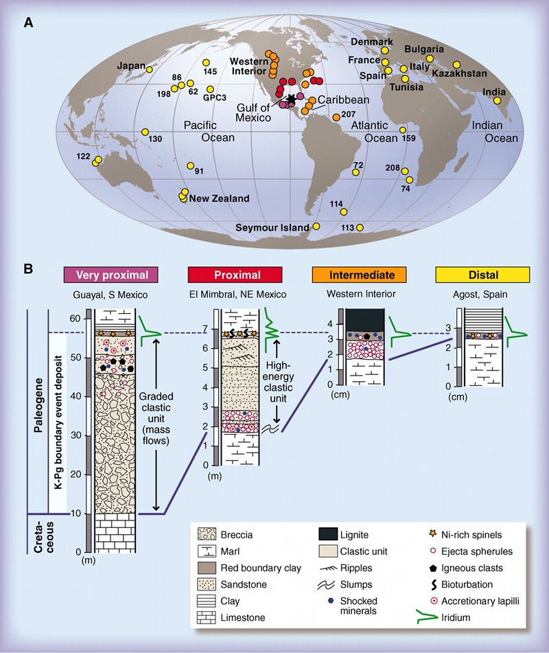 Global distribution map of key K—Pg boundary data locations