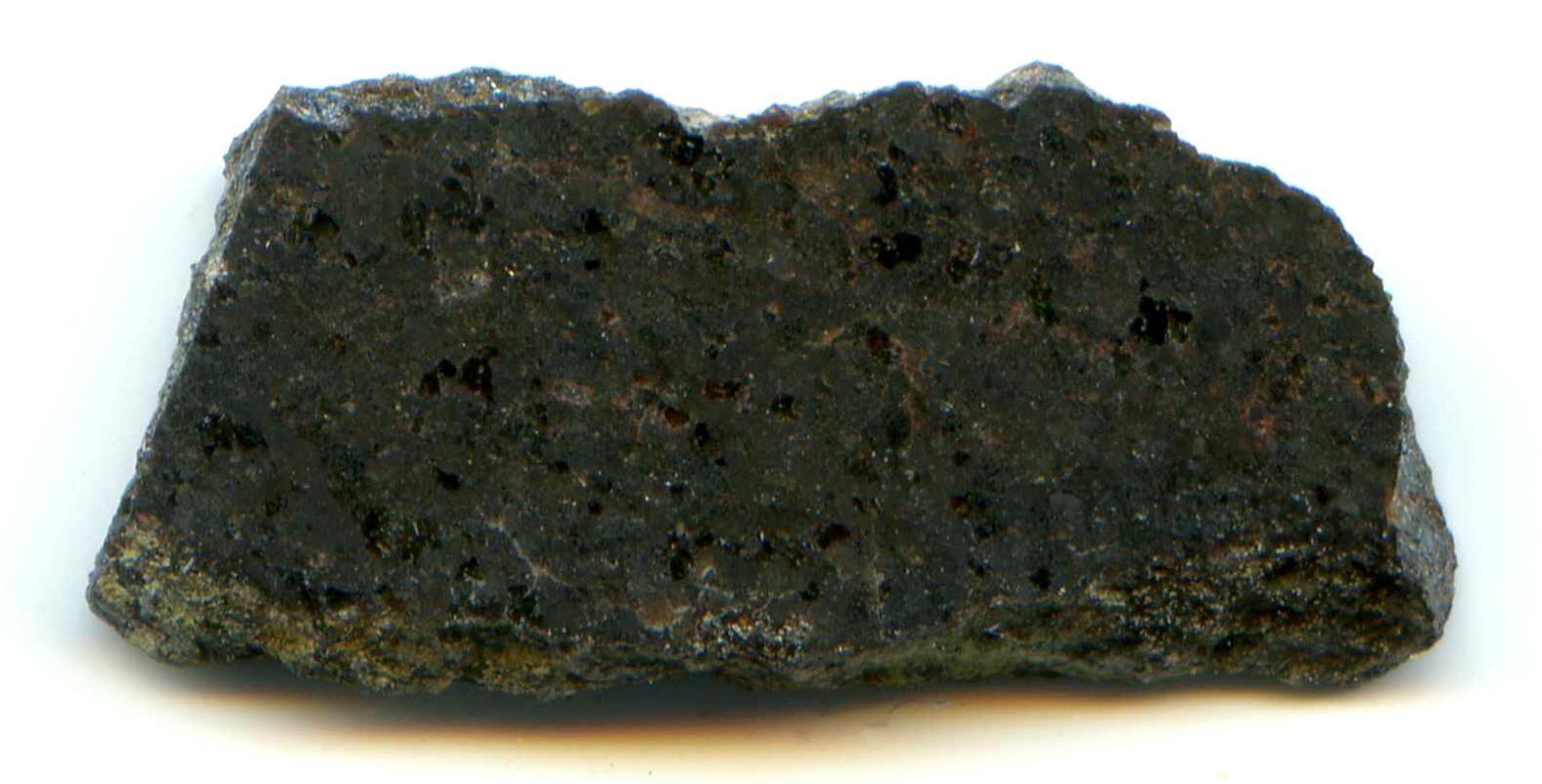 The CRE age based on 3He and 21Ne was determined to be ~29 m.y. The specimen of NWA 5400 shown above is a 5.3 g partial slice. Shown below is a composite image of both sides of the complete mass as found.