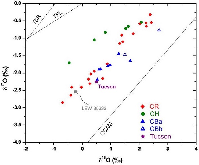 Oxygen Three-Isotope Diagram for CR Clan and Tucson Silicates