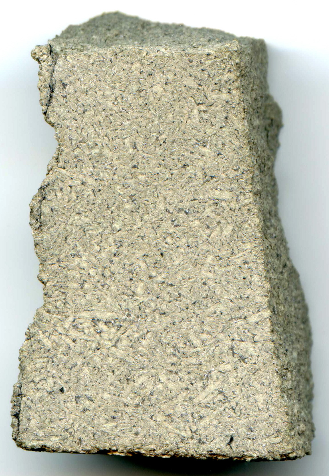 The Zagami meteorite includes a range of lithologies formed through progressive fractional crystallization of the magma, which reflects increasing enrichment of FeO and incompatible elements (McCoy et al., 1999). Most prevalent (~80%) is the early-crystallizing normal lithology (NZ), composed of both fine-grained (FG, photo from Jay Piatek in EOM) and coarse-grained (CG, see photo above) components, which are crossed by shock-melt veins. The parent melt of the fine-grained lithology may have inherited a larger abundance of pre-existing pyroxene nuclei than did the coarse-grained lithology parent melt (Nyquist et al, 2006). Next in order to crystallize, constituting most of the remaining evolved, incompatible element-enriched rock, was an FeO-enriched component, the dark-mottled lithology (DML, see photo courtesy of Vincent Jacques). The DML has been found to contain a small component (~10%) of late-stage melt pockets that are enriched in fayalite, phosphates, sulfides, oxides (e.g., ZrO2), and mesostases, and which contain a martian atmosphere component. However, these olivine-rich melt pockets contain an anomalous Sr-isotopic signature inconsistent with very late-stage fractional crystallization, and may instead reflect the infiltration of a highly evolved magma into a nearly solidified body (Misawa et al., 2012). The phosphates in these melt pockets consist primarily of whitlockite and contain ~5000 ppm martian water, reflecting either a very dry magma source or efficient outgassing. One very large, highly-evolved, olivine-rich melt pocket located in the DML component was named after its finder, David New (DN).
