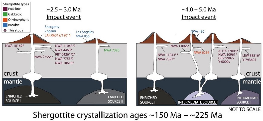 Schematic of the Emplacement of Enriched and Intermediate Shergottites