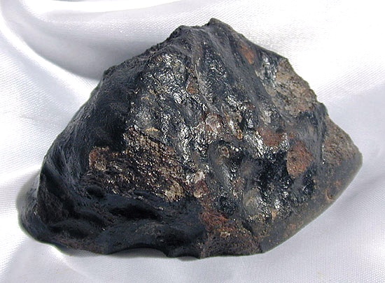 The specimen of Zag (b) shown above is a 2.2 g partial slice. A microscopic examination reveals the yellow-green olivine enclaves scattered throughout this meteorite.