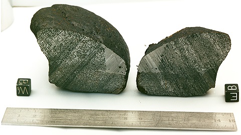 | i. Plagioclase-free (e.g. Almahata Sitta #15 [archetypal Hughes-type], ALH 82106 and pairs, Calama 001, EET 96293 and pairs, FRO 90054/93008 [archetypal Hughes-type], FRO 90228 [archetypal Hughes-type], HaH 064, Hughes 009 [archetypal Hughes-type], LEW 88774, META78008, NWA 2895, NWA 3222 [archetypal Hughes-type], NWA 11754 [archetypal Hughes-type], Ramlat as Sahmah 530 [photo courtesy of Marcin Cimala], Y-74130) |