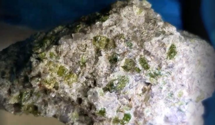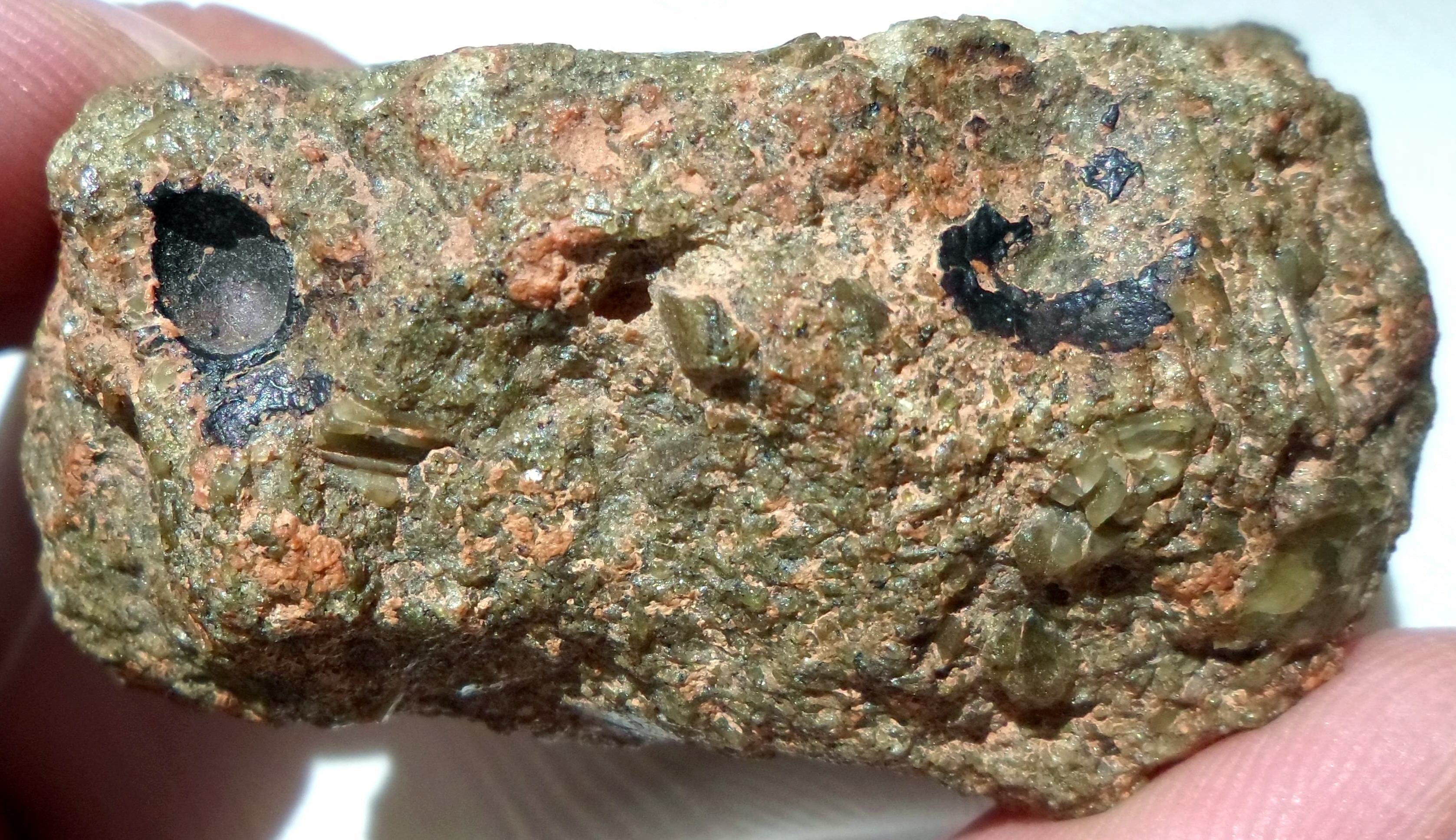 | 4. Plutonic-cumulate (e.g. Angra dos Reis [pyroxenitic], Fezzou 002 [abs], LEW 86010, NWA 2999 and 12+ pairs [peridotitic], NWA 4590, NWA 4801, NWA 5379, NWA 8535 [dunitic, youngest crystallization; article; photo courtesy of Habib Naji], NWA 14758 [abs]) |