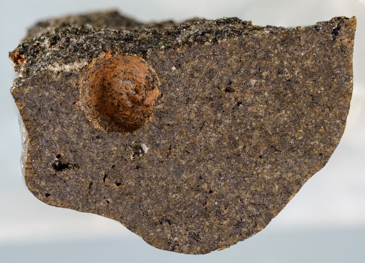 | b. Evolved melts "Group 2", ~6–9 kbar (e.g. D'Orbigny, NWA 1296, NWA 7203 [shock metamorphism; Hayashi et al., 2022; Takenouchi et al., 2025; photo courtesy of Labenne Meteorites], Sahara 99555) |